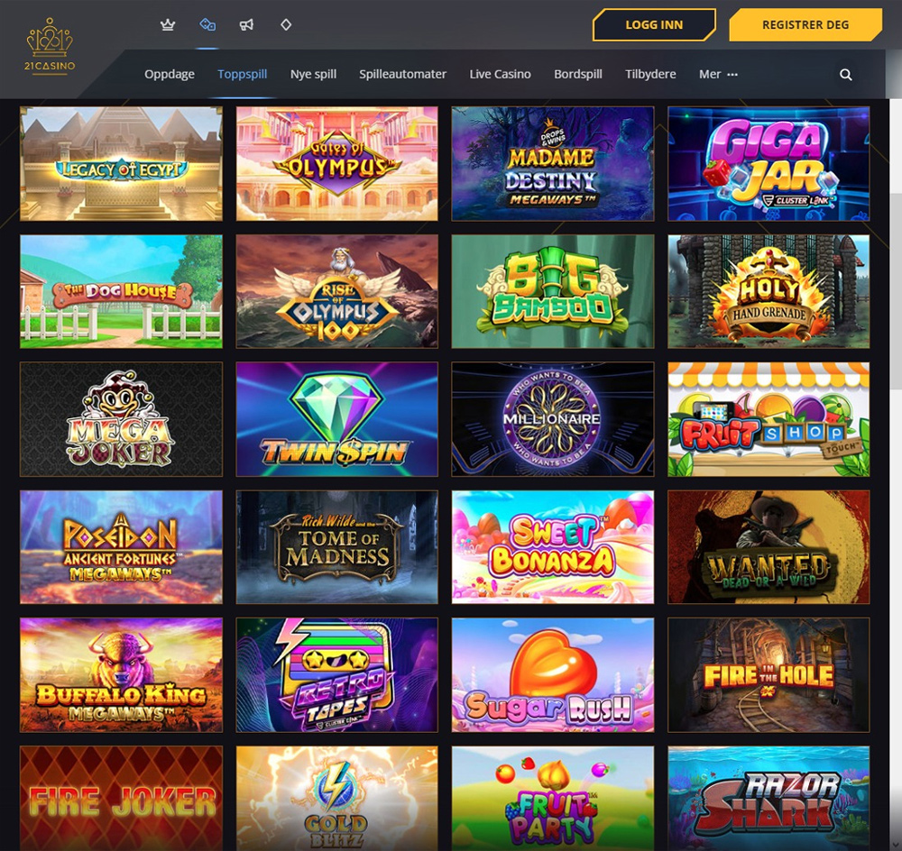 De fleste spillere mener at spillutvalget er noe av det viktigste når de skal velge casino. Det er egentlig ganske logisk. Hvis spillene du ønsker å spille ikke er tilgjengelige, velger du et annet casino med et bedre utvalg. Vi er imidlertid ganske sikre på at du ikke vil bli skuffet når det kommer til 21Casino.
