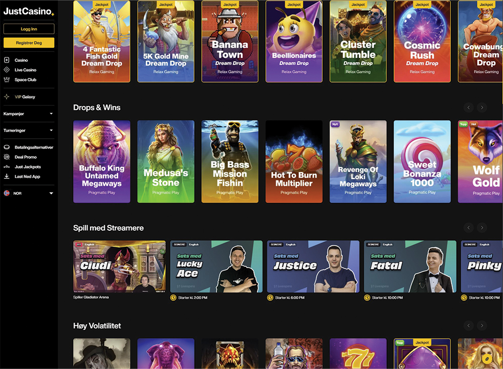 Spillene som tilbys på JustCasino er intet mindre enn fantastiske. Tenk deg å ha et stort utvalg av populære spilleautomater som spenner fra moderne spilleautomater ned til fruktmaskiner i klassen, og alle med spennende temaer og spill. Fans av tradisjonelle casinospill kan også delta i forskjellige bordspill som baccarat og blackjack.