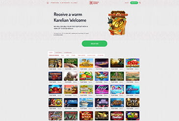 Karjala casino er ett ryddig casino, med ett bra utvalg av spill. Her finner man det meste man forbinder med ett casino og det er spillautomater og live casino. Begge disse delene har ett bra utvalg, tyngden ligger også her på spillautomater. Men det er også ett godt utvalg bordspill for oss som liker det. Sammen lignet med andre nye online casinoer så er dette casinoet ett spennede valg og det gjør det ikke mer spennende at det har Finnsk opphav.