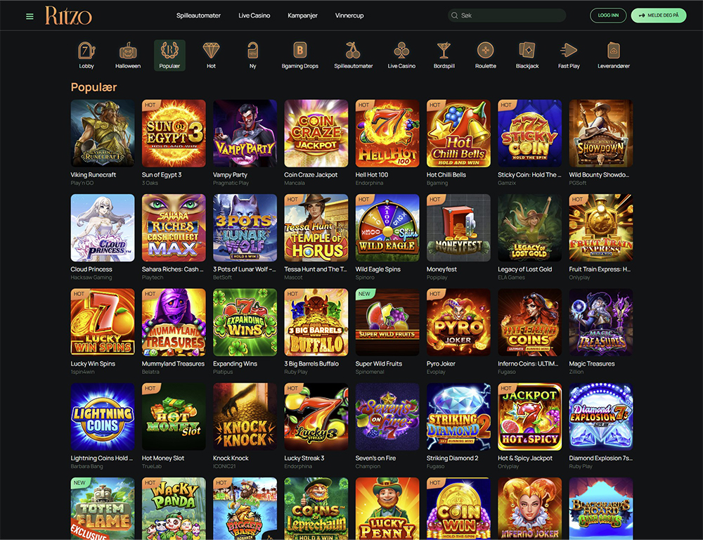 Her får spillerne alt de ønsker – gode bonus tilbud, populære betalingsalternativer, raske utbetalinger og klare vilkår og betingelser. Casinoet er spesifikt bygget for å levere en førsteklasses opplevelse og skiller seg tydelig fra svindeloperatører. Enten du bare ønsker å spille for moro skyld, er en liten spiller eller en high roller, gir Ritzo en pålitelig, spennende og fullpakket opplevelse til hver spiller. Så uten tvil tilhører denne plattformen de beste operatørene på det norske markedet.