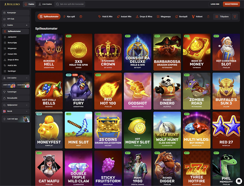 Rollero casino leverer det man forventer av et suverent nettcasino. Det er først og fremst utvalget som virkelig er imponerende. Her kan man velge blant de aller beste spillene på markedet fra de beste utviklerne!