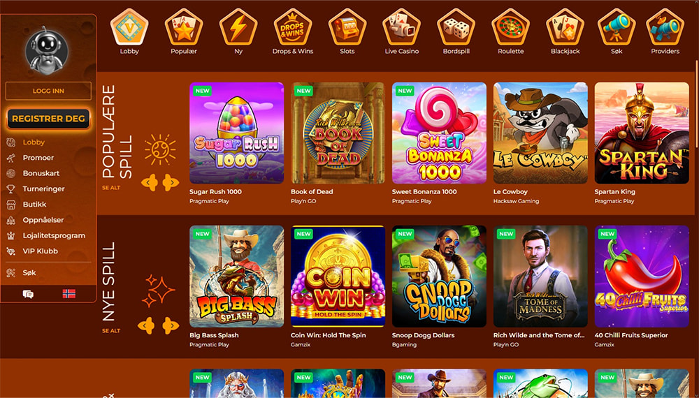 Vegazone har et oversiktlig grensesnitt med tydelige menyer, søkefelt og filtrering. Spillene er lette å finne, og du kommer raskt til riktig tittel uten å bla i unødige lister. Du kan sortere etter kategori, leverandør, spilltype, volatilitet og funksjoner, noe som gjør navigasjonen presis. Strukturen er ryddig, sidene laster raskt, og alt er satt opp for effektiv bruk. Det gjør det enkelt å bytte mellom spill uten at du mister oversikten.