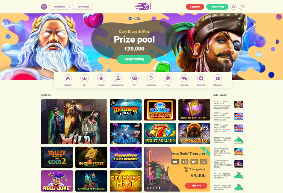 YoYoCasino har en oversiktelig og ryddig side, som er enkel og rask å få overblikk over. Spill kategoriene er lett å få øye på og man ser fort hva som er velkomstbonus eller andre kampanjer som kjører akkurat nå. Scroller man helt ned på siden, finner man regler & vilkår, Personvernerklæringe og kontakt oss. Man får også en oversikt over betalingsalternativer man kan bruke,, disse ligger helt i bunnen sammen med lisens detalene.
